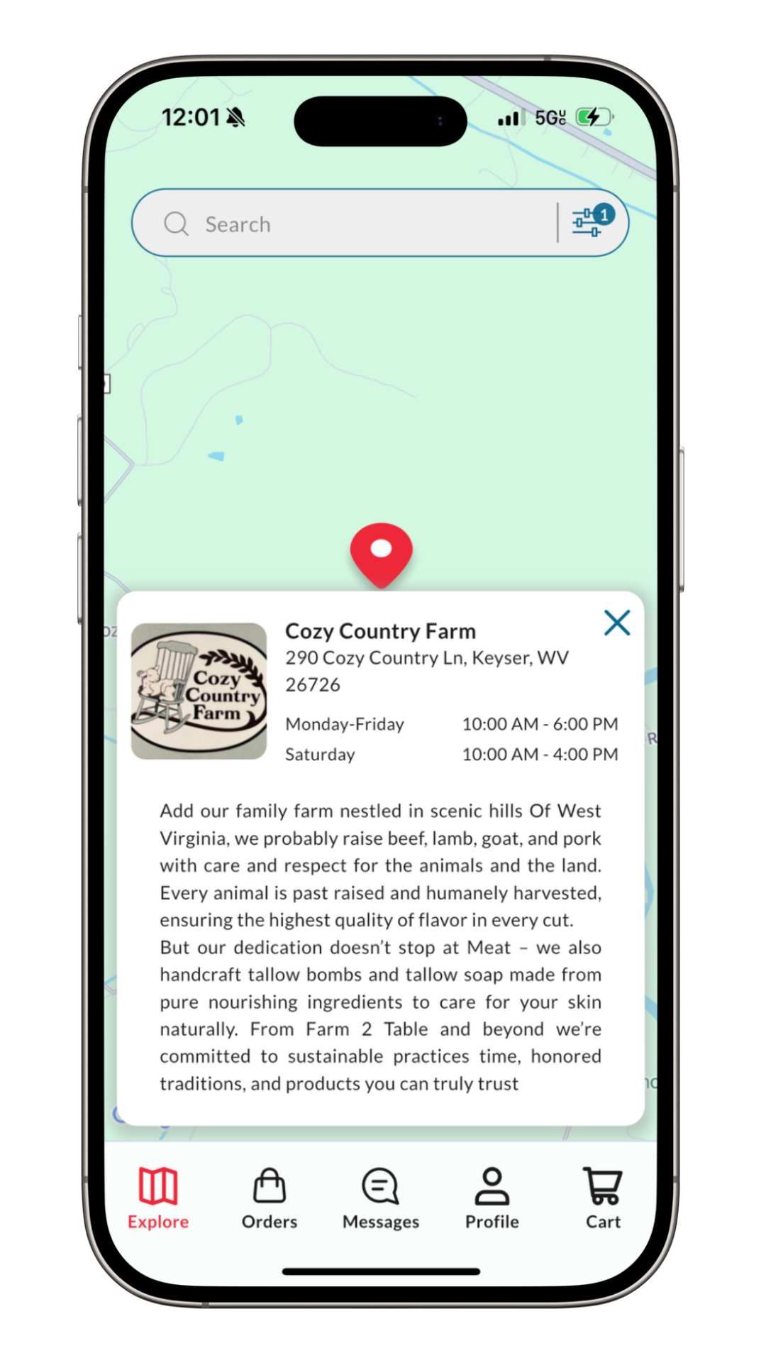 Completely FREE to sign up, make a profile, and start selling your products on the platform. Low barrier to entry for farms to find customers.